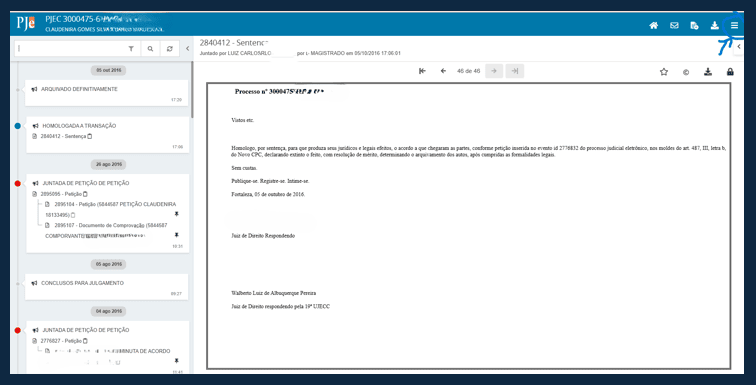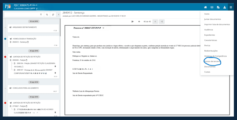 2. Selecione o número do seu processo.